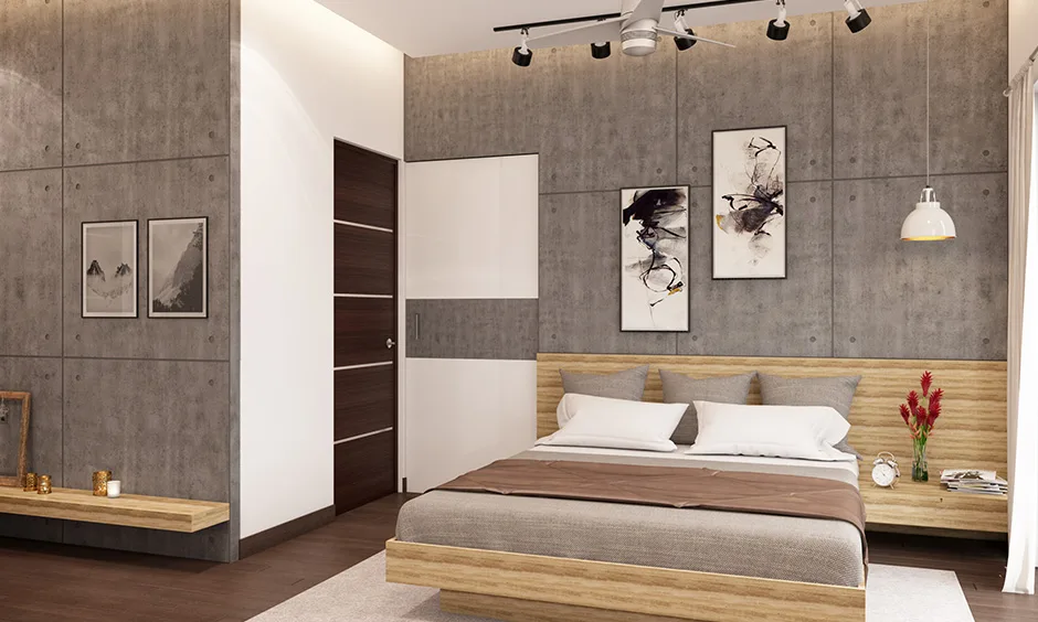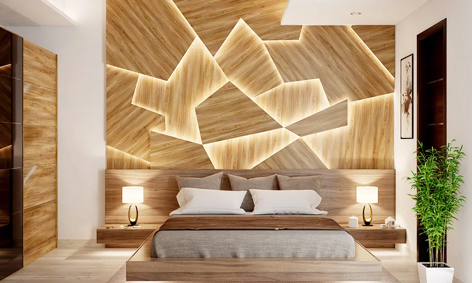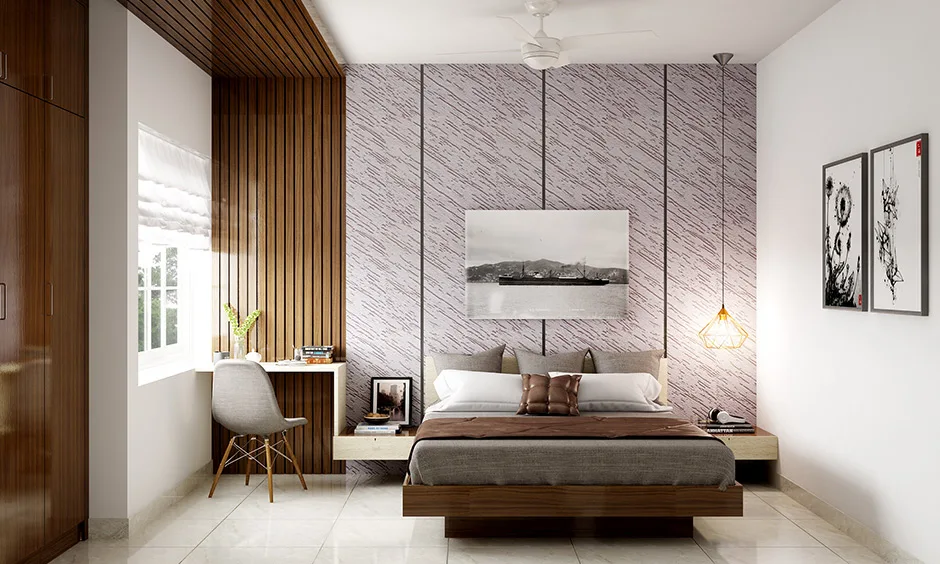 Khung gỗ không sơn phủ, giữ nguyên màu vân tự nhiên. Đem lại cảm giác mộc mạc và gần gũi cho phòng ngủ.