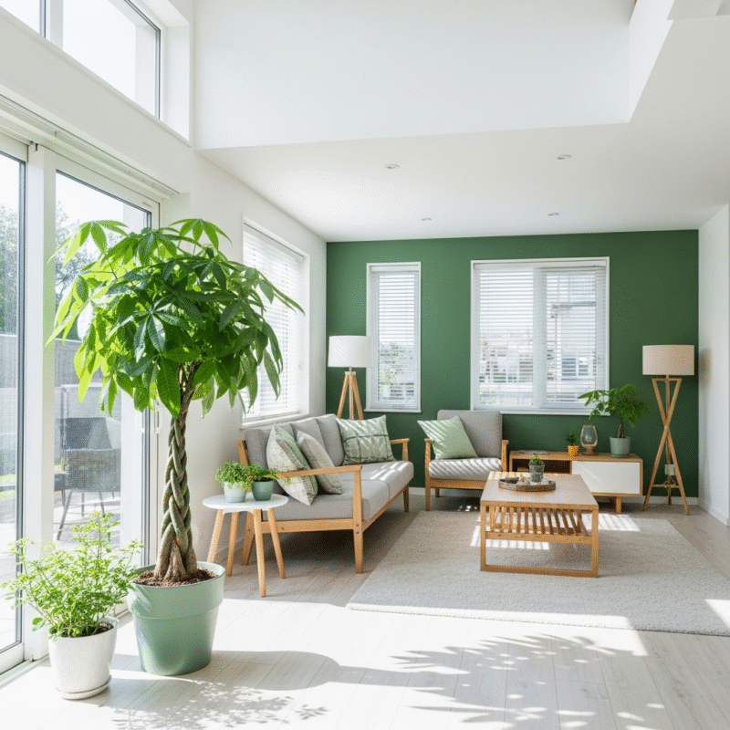 👉 Nên đặt cây ở các góc phòng, gần cửa sổ hoặc cửa ra vào để thu hút sinh khí và cân bằng năng lượng.
