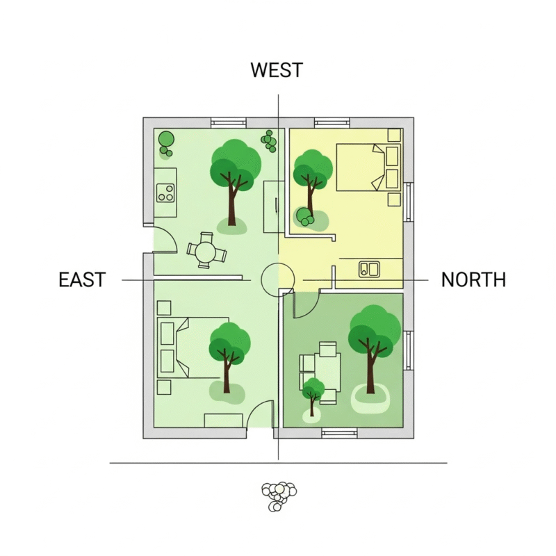 - Hướng Đông, Đông Nam (Hành Mộc): Tốt nhất để đặt cây xanh, mang lại sức khỏe và may mắn.
