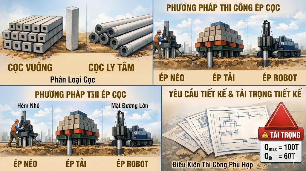 - Phương pháp thi công (ép neo, ép tải hoặc robot).