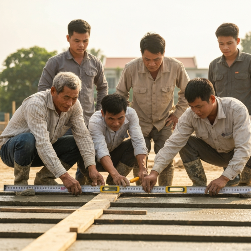 👉 Bê tông lót tạo bề mặt phẳng – cứng – ổn định, giúp: