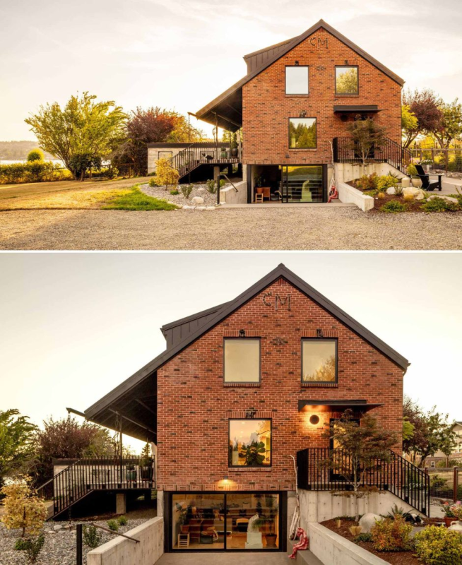 Sau khi cải tạo, kiến trúc sư vẫn giữ nguyên cửa trước tại vị trí cũ nhưng đã thiết kế lại toàn bộ hệ cửa sổ. Hai ô cửa nhỏ ở tầng trên được loại bỏ để tạo sự thông thoáng.