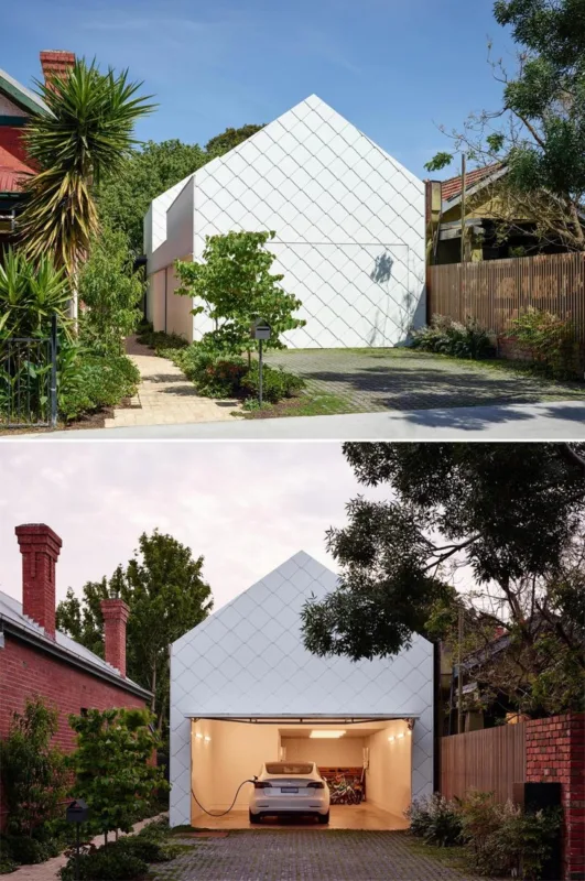 Tấm lợp kim loại màu trắng đang trở thành xu hướng nổi bật trong thiết kế nhà ở hiện đại. Không chỉ mang vẻ đẹp tối giản, chúng còn có khả năng phản xạ nhiệt tốt và độ bền vượt trội. Trong mẫu nhà dưới đây, mái lợp màu trắng không chỉ tạo nên nét độc đáo riêng mà còn giúp ngôi nhà nổi bật giữa khu phố. Tổng thể mang đến cảm giác thanh thoát và sang trọng.