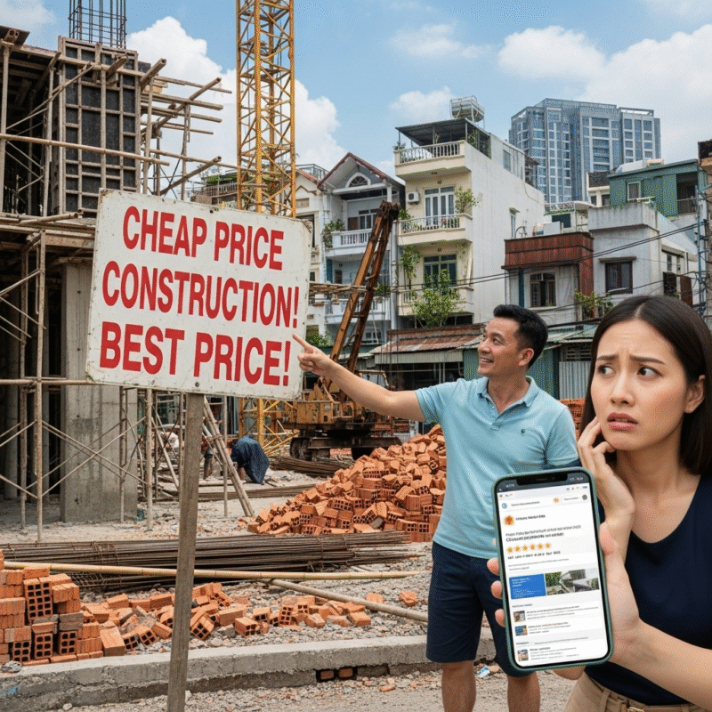 👉 Cách khắc phục: Tham khảo thực tế công trình của nhà thầu, đọc review, hỏi ý kiến khách hàng cũ. Nên chọn công ty có uy tín và thương hiệu rõ ràng.