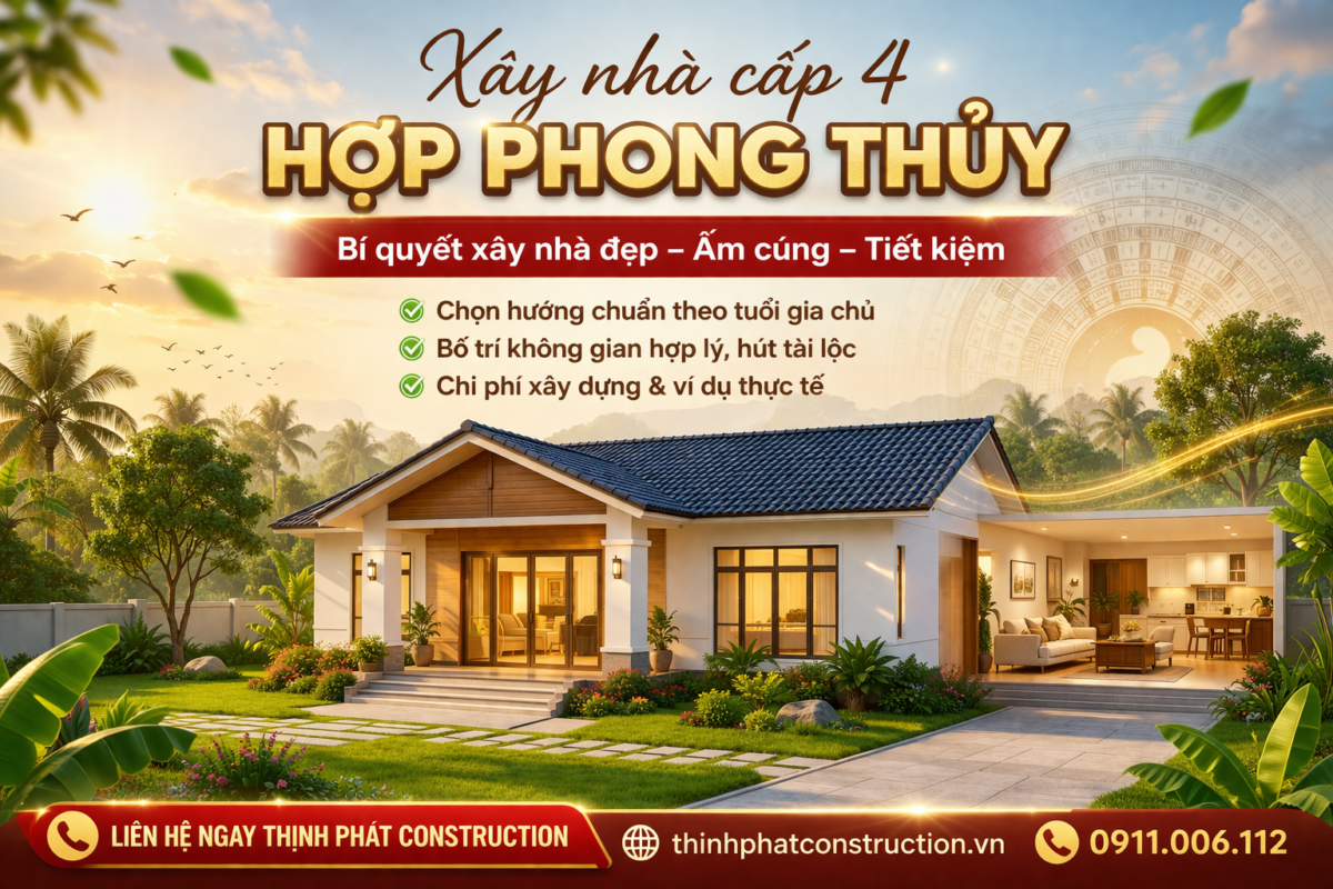 Xây nhà cấp 4 hợp phong thủy không quá phức tạp nếu bạn chuẩn bị đúng ngay từ đầu. Chỉ cần chọn hướng phù hợp, bố trí hợp lý và kiểm soát chi phí tốt là bạn đã giảm được rất nhiều rủi ro.