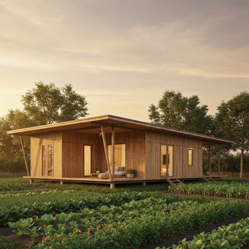 Thời gian thi công thực tế tại công trình chỉ 7–30 ngày, phù hợp với đất dự án, homestay, farmstay hoặc nhà ở tạm – bán kiên cố.